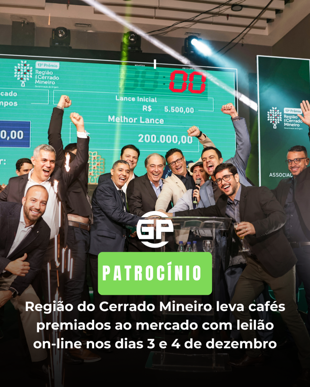 O Leilão Solidário, realizado durante a cerimônia presencial em Uberlândia, movimentou R$ 562 mil, com uma média de R$ 62,4 mil por saca. A saca campeã da categoria Cereja Descascado, produzida por Eduardo Pinheiro Campos, da Fazenda Dona Nenem, em Presidente Olegário, foi arrematada por R$ 200 mil — o maior valor já registrado por uma saca de café em um leilão nacional.