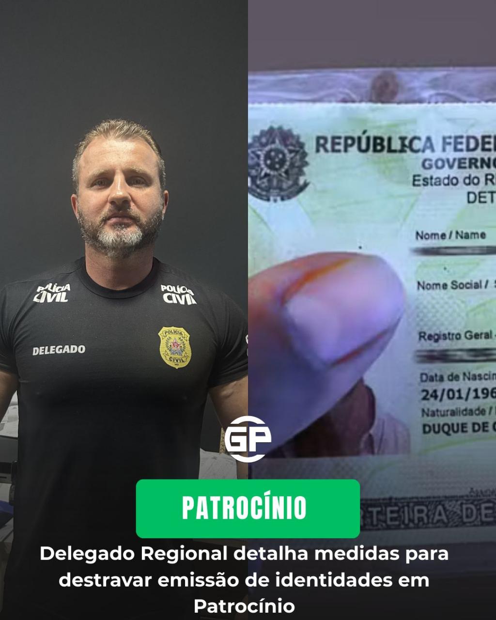 O delegado regional da Polícia Civil, Dr. Alisson Felipe Procopio Centervilles, explicou as providências adotadas para enfrentar o gargalo na emissão de carteiras de identidade em Patrocínio. O serviço, que envolve servidores municipais e a estrutura da Polícia Civil, enfrentou dificuldades recentes, especialmente durante mutirões realizados aos fins de semana.