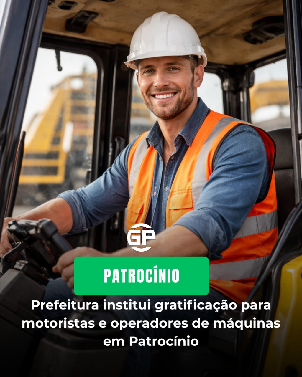 Foi sancionada nesta quarta-feira (11) a Lei Complementar nº 272/2026, proposta pelo Executivo e aprovada pela Câmara Municipal, que prevê o pagamento de incentivo financeiro a servidores da Prefeitura de Patrocínio que atuam como motoristas e operadores de máquinas leves e pesadas.