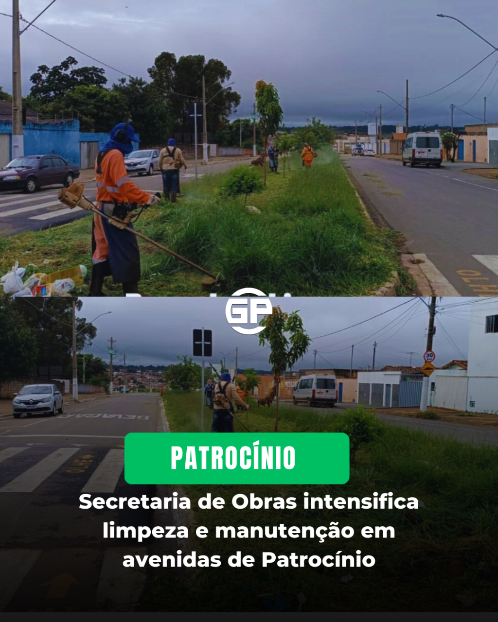 A Secretaria Municipal de Obras de Patrocínio vem realizando um amplo trabalho de limpeza urbana e manutenção em diversas avenidas da cidade, contemplando não apenas a região central, mas também importantes vias dos bairros.