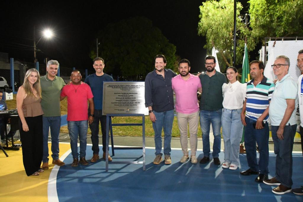 O Governo Municipal realizou, na noite de 8 de outubro, a entrega das obras de revitalização da Praça Abrão Abdallah Daura, da Quadra de Esportes Clayton Rodrigues Caixeta e do Playground Kennedy Espanhol Silva, no Bairro Morada Nova.