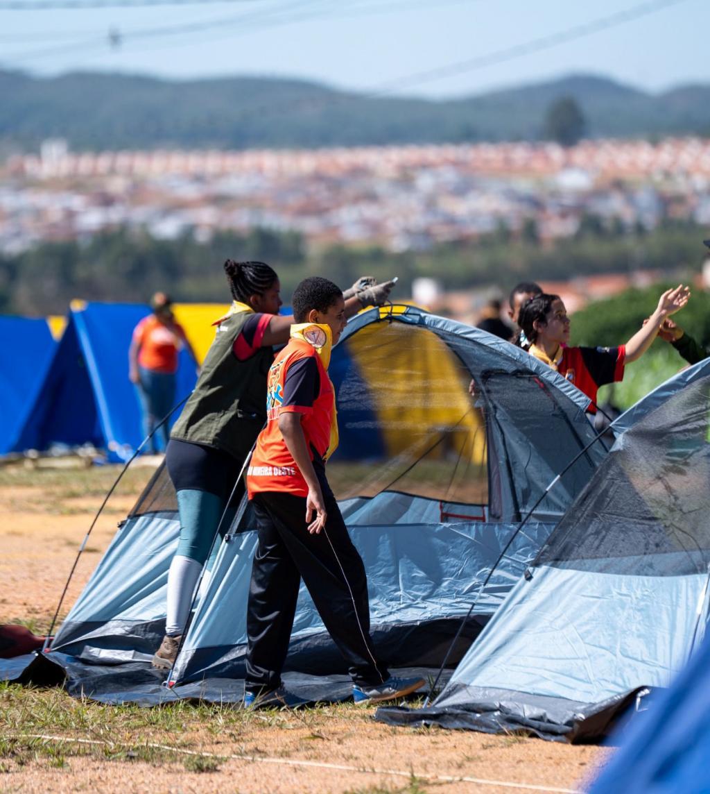 Sugestões de cobertura: montagem da estrutura, atividades ao ar livre, rotinas do acampamento, dinâmica das equipes e a ação social da passeata.